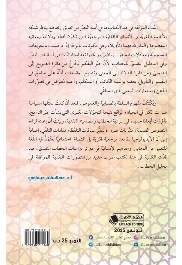 ويُكْتَنَفُ مفهوم السلطة بالضبابية والغموض، فبعد أن كانت تمثلها السياسة صارت الكل في الحياة والواقع نتيجة التحوّلات الكبرى التي نشأت عبر التاريخ، فأفرزت أبعادًا جديدة في سردية الخطاب ومضامينه النقدية، وبينت أن إعادة قراءة النصوص القديمة زمنيا بات ضرورة لتغير سياقات التلفظ ومقامات التلقي، إضافة إلى أن الأيديولوجيا لم تعد مرجعية فكرية بل اقتضاء اجتماعيا تُعْتَمَدُ فيه اللغة للتعبير عن المعاني ومفاهيم الإنسانية في دوائر دراسات الخطاب النقدي.. فما قدمته الكاتبة في هذا الكتاب ضرب جديد من التصوّرات النقدية الموظفة في تحليل الخطاب .