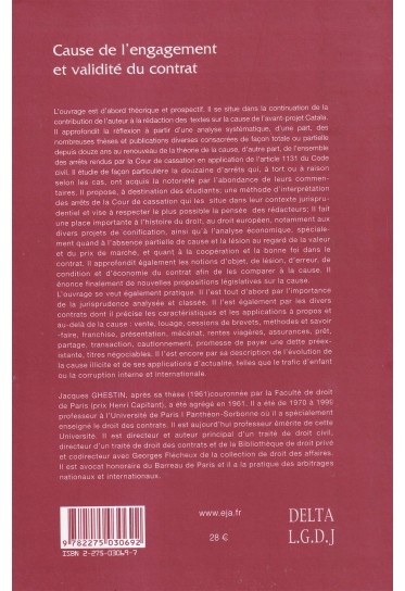 L'ouvrage se veut également pratique. Il l'est tout d'abord par l'importance de la jurisprudence analysée et classée. Il l'est également par les divers contrats dont il précise les caractéristiques et les applications à propos et au-delà de la cause: vente, louage, cessions de brevets, méthodes et savoir -faire, franchise, présentation, mécénat, rentes viagères, assurances, prêt, partage, transaction, cautionnement, promesse de payer une dette préex- istante, titres négociables. Il l'est encore par sa description de l'évolution de la cause illicite et de ses applications d'actualité, telles que le trafic d'enfant ou la corruption interne et internationale.