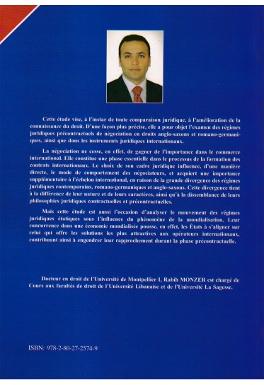 Cette étude vise, à l'instar de toute comparaison juridique, à l'amélioration de la connaissance du droit. D'une façon plus précise, elle a pour objet l'examen des régimes juridiques précontractuels de négociation en droits anglo-saxons et romano-germani- ques, ainsi que dans les instruments juridiques internationaux.