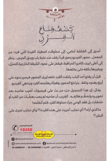 أحدق إلى الشاشة أمامي، إلى محاولات اصطياد القردة التي فرت من المعمل.. مصور الفيديو يصور قردًا يقف عند عتبة باب ويدق الجرس.. ينظر إلى أعلى ليرى كاميرا المراقبة، فيقفز على عمود الشرفة الخارجية للمنزل ويضربها بكفه حتى يخلعها.