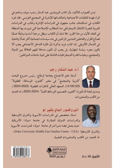 ومن الصواب التأكيد، بأن كتاب البروفسور عبد الستار رجب سوف يساهم في اثراء فهمنا للتقلبات الاجتماعية وانعكاساتها الإدارية في المجتمع التونسي. فقد تفرد الكتاب في استكشاف جانب مجهول في الدراسات الإدارية وغائب في الدراسات العربية لتجربة الانتقال الديمقراطي منذ المطالب الإصلاحية التي تميزت بها المنطقة في العقد الأول من هذا القرن. فلا شك أن الكتاب سيظل مرجعا أساسيا ودليلا عمليا لصناع القرار والفاعلين المدنيين الراغبين في بناء سياسات اجتماعية أكثر عدلا وفاعلية في الشمال الأفريقي. إنه كتاب فريد يذكرنا بأن فكرة التدخل الاجتماعي يجب ألا تكون مجرد سياسة انتهازية، بل يجب أن تكون مدخلا لفهم العلاقة بين الدولة والمجتمع، ومقياسا لقدرة الديمقراطيات الناشئة على تلبية حاجات المواطنين.