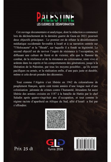 Cet ouvrage documentaire et analytique, dont la rédaction a commencé lors du déclenchement de la dernière guerre de Gaza en 2023, poursuit deux objectifs principaux : Le premier est de réfuter la désinformation médiatique occidentale favorable à Israël et à sa narration centrée sur "l’Holocauste" et la "Shoah", sur laquelle il a fondé sa légitimité. Le second objectif est de raviver l’esprit de résistance à l’occupation, en diffusant une culture de fierté et de victoire, afin que la flamme du combat, de la résilience et de la résistance au colonisateur, reste vive et ardente dans les esprits et les comportements des générations, jusqu’à la libération de la Palestine, par tous les moyens possibles , qu’ils soient pacifiques ou armés, et la réalisation enfin, d’une paix juste et durable, même si cela devait prendre des décennies.