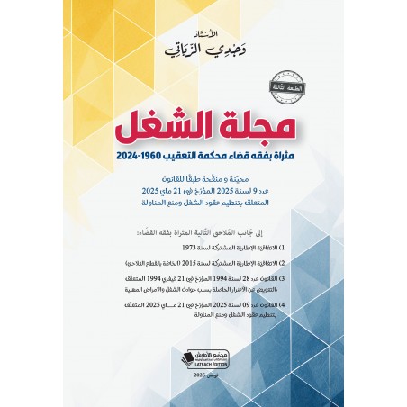 يتضمن هذا الكتاب مجلة الشغل محينة ومثراة بفقه قضاء محكمة التعقيب وقد جمعنا صلبه القرارات الصادرة عن هذه المحكمة قديما وحديثا بدوائرها المنفردة والمجتمعة سواء المنشورة أو غير المنشورة وذلك إلى غاية سنة 2024.