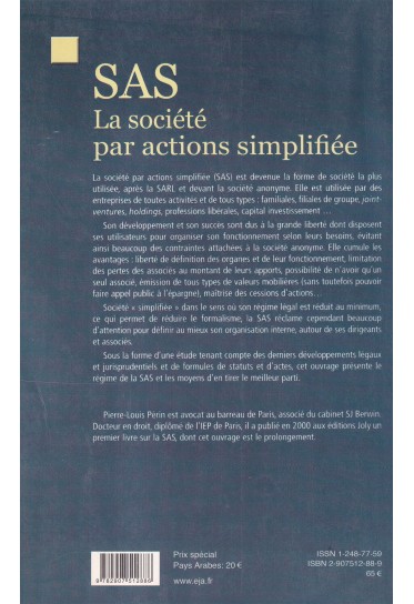 Sous la forme d'une étude tenant compte des derniers développements légaux et jurisprudentiels et de formules de statuts et d'actes, cet ouvrage présente le régime de la SAS et les moyens d'en tirer le meilleur parti.