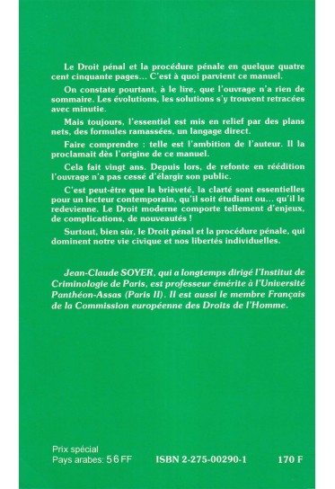 Jean-Claude SOYER, qui a longtemps dirigé l'Institut de Criminologie de Paris, est professeur émérite à l'Université Panthéon-Assas (Paris II). Il est aussi le membre Français de la Commission européenne des Droits de l'Homme