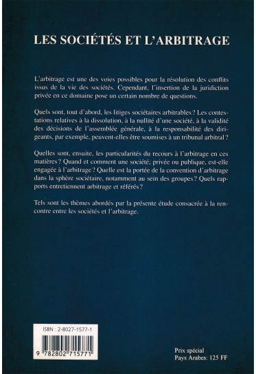 Tels sont les thèmes abordés par la présente étude consacrée à la ren- contre entre les sociétés et l'arbitrage