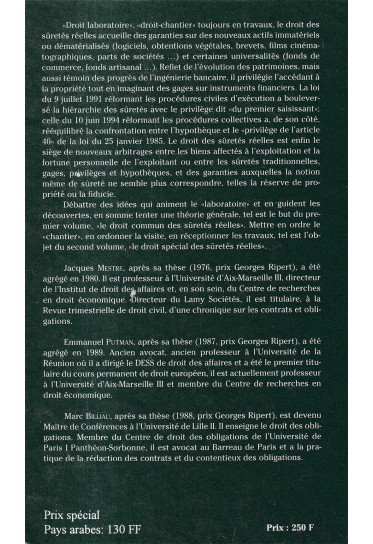 Débattre des idées qui animent le «laboratoire et en guident les découvertes, en somme tenter une théorie générale, tel est le but du pre- mier volume, le droit commun des sûretés réelles. Mettre en ordre le <chantier», en ordonner la visite, en réceptionner les travaux, tel est l'objet du second volume, «le droit spécial des sûretés réelles».