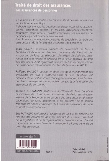 Ce volume est le quatrième du Traité de Droit des assurances sous la direction de Jean Bigot.