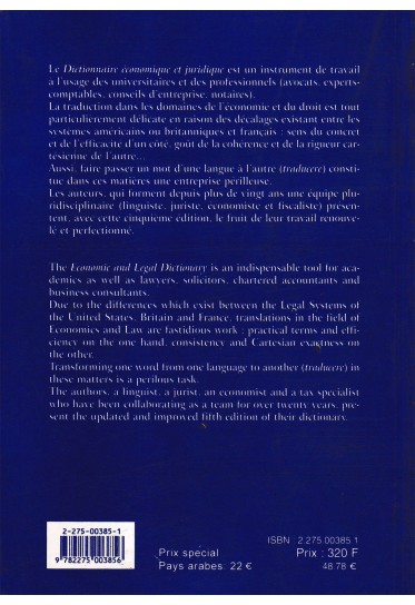 Le Dictionnaire économique et juridique est un instrument de travail a l'usage des universitaires et des professionnels (avocats, experts- comptables, conseils d'entreprise, notaires).