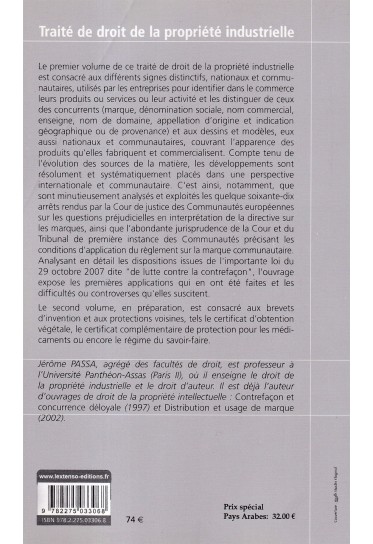 Le premier volume de ce traité de droit de la propriété industrielle est consacré aux différents signes distinctifs, nationaux et commu- nautaires, utilisés par les entreprises pour identifier dans le commerce leurs produits ou services ou leur activité et les distinguer de ceux des concurrents (marque, dénomination sociale, nom commercial, enseigne, nom de domaine, appellation d'origine et indication géographique ou de provenance) et aux dessins et modèles, eux aussi nationaux et communautaires, couvrant l'apparence des produits qu'elles fabriquent et commercialisent. Compte tenu de l'évolution des sources de la matière, les développements sont résolument et systématiquement placés dans une perspective internationale et communautaire. C'est ainsi, notamment, que sont minutieusement analysés et exploités les quelque soixante-dix arrêts rendus par la Cour de justice des Communautés européennes sur les questions préjudicielles en interprétation de la directive sur les marques, ainsi que l'abondante jurisprudence de la Cour et du Tribunal de première instance des Communautés précisant les conditions d'application du règlement sur la marque communautaire. Analysant en détail les dispositions issues de l'importante loi du 29 octobre 2007 dite "de lutte contre la contrefaçon", l'ouvrage expose les premières applications qui en ont été faites et les difficultés ou controverses qu'elles suscitent.