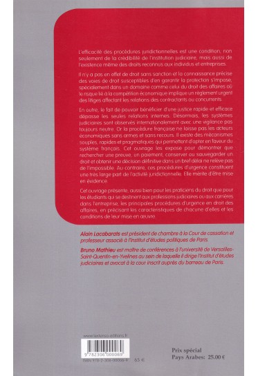 En outre, le fait de pouvoir bénéficier d'une justice rapide et efficace dépasse les seules relations internes. Désormais, les systèmes judiciaires sont observés internationalement avec une vigilance pas toujours neutre. Or la procédure française ne laisse pas les acteurs économiques sans armes et sans recours. Il existe des mécanismes souples, rapides et pragmatiques qui permettent d'opter en faveur du système français. Cet ouvrage les expose pour démontrer que rechercher une preuve, un paiement, conserver ou sauvegarder un droit et obtenir une décision définitive dans un bref délai ne relève pas de l'impossible. Au contraire, ces procédures d'urgence constituent une très large part de l'activité juridictionnelle. Elle mérite d'être mise en évidence.
