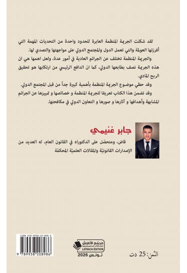وقد تضمن هذا الكتاب تعريفاً للجريمة المنظمة وخصائصها و تمييزها عن الجرائم المشابهة وأهدافها و آثارها و صورها و التعاون الدولي في مكافحتها.